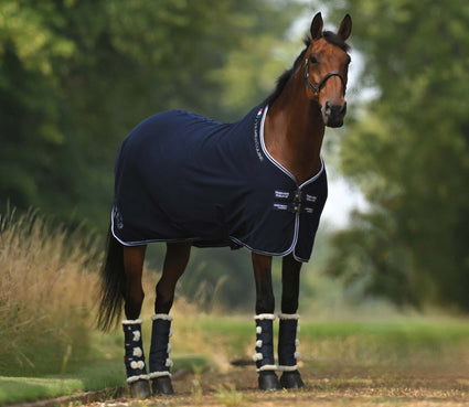 Crafted from high-performance, anti-static treated jersey fabric with a soft fleece inner lining, this cooler rug provides a gentle, insulating layer for your horse. Its sporty, tailored fit enhances both comfort and appearance, while the double T-bar front closure with double-locking Velcro ensures a secure fit. Stabilisation stitching at the neckline prevents stretching, preserving the rug's shape over time. Finished with a wipe-clean PVC-coated tail strap for easy maintenance, this cooler combines premium materials with smart design, making it an essential for everyday comfort and post-exercise recovery.