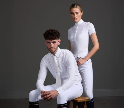 The Andate Men's Long Sleeve Show Shirt seamlessly combines classic styling with high-performance fabrics, designed to keep you cool, comfortable and impeccably sharp in the show ring. Crafted from a luxurious, technical 4-way stretch pique jersey, this shirt offers superior breathability and moisture-wicking properties, ensuring you stay at your best even during intense competitions.
