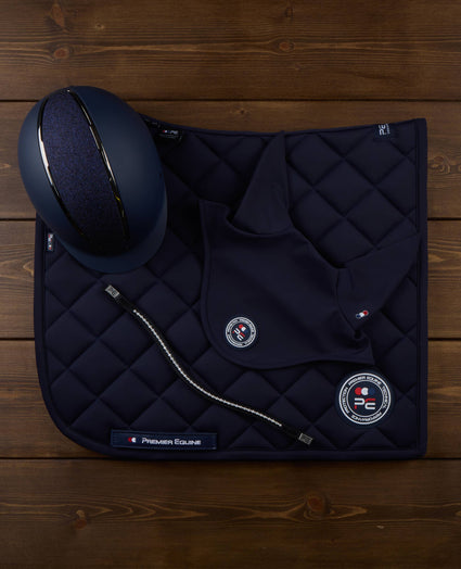 The Atlas Close Contact Dressage Square delivers both elegance and functionality, made from bonded nylon fabric with sweat-wicking bamboo lining. The diamond-quilted matte finish creates a refined style, while the bamboo interior enhances comfort and breathability. Featuring a high wither design, satin binding, and nylon lycra reinforcement, it provides a secure, pressure-free fit and long-term durability. Finished with adjustable straps and a silicone PE badge, this luxury dressage saddle pad is perfect for riders who demand performance and style.