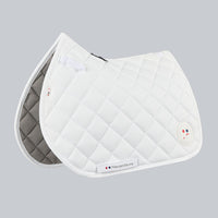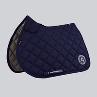 Engineered with advanced materials, the Atlas GP/Jump Close Contact Pad features a bonded nylon outer with elegant quilting, combined with a bamboo lining for superior sweat-wicking and breathability. The high wither design reduces pressure across the back, while satin binding and nylon lycra enhance structure and flexibility for a flawless fit. Adjustable Velcro straps secure the pad in place, and the subtle PE badge adds a polished finishing touch. A technical jump saddle pad built for performance and style.