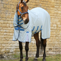 The Bug Buster Fly Rug with Detachable Neck Cover and Belly Flap has been crafted from a strong, yet breathable mesh fabric providing full body coverage, whilst allowing optimal airflow to keep your horses cool. Providing approx 70% UV protection, this fly rug with detachable neck ensures your horse stays shielded from the sun, whilst offering full head-to-tail coverage against biting flies, bugs and insects.
