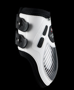 The carbon fibre integrated into this design provides ultra-lightweight protection for the lower leg, renowned for its exceptional shock-absorbing capabilities. The Carbon Pro Fetlock Boots offer the ultimate safeguarding for vulnerable joints, standing as the epitome of elite leg protection with unmatched durability.