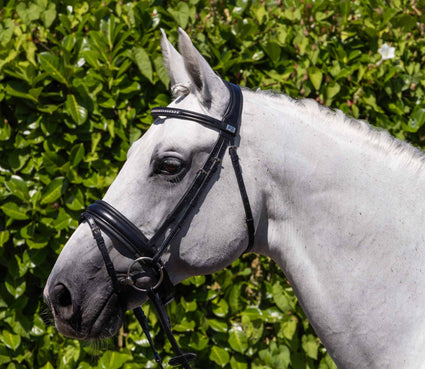 The Castello Anatomical Bridle is stunningly black, exuding a sense of elegance and sophistication. The deep black hue of the luxurious Italian leather not only gives the bridle a timeless and classic look but also showcases the superior quality and craftsmanship that goes into its creation.