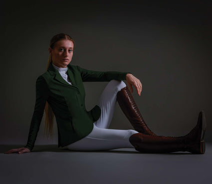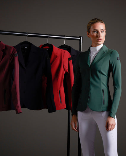Expressing tones of a natural heritage, this characteristic competition jacket demands attention. The signature shade of Alpine Green creates an aura of elegance and power, leaving a lasting impression in the arena and rejuvenating your competition wardrobe.