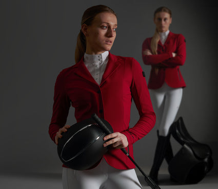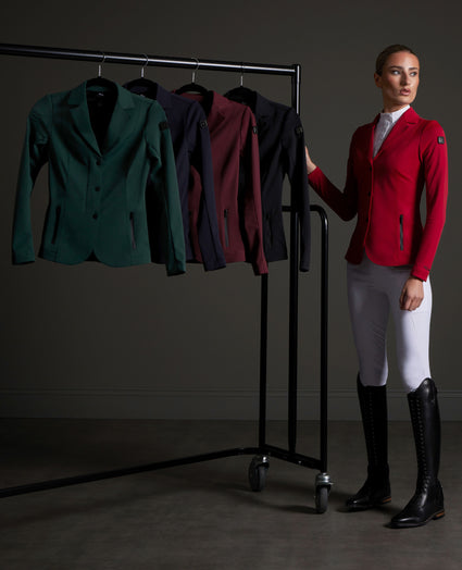 A bold statement piece, this vibrant competition jacket is sure to stand out from the crowd. The opulent shade of London Red allows you to leave a lasting impression in the arena, rejuvenating your competition wardrobe.