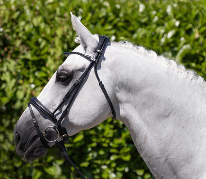 This bridle is available in a classic black hue, adding a touch of timeless elegance to its sophisticated design. This colour choice makes the bridle versatile and suitable for various equestrian disciplines while maintaining a polished and professional appearance.
