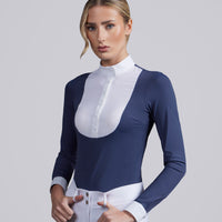 The Premier Equine Navarra Ladies Long Sleeve Competition Shirt offers a perfect blend of style, comfort, and performance. Made from breathable, high-quality fabric with excellent moisture-wicking, it keeps riders dry and comfortable during training or competitions. The long sleeves provide added sun protection, while the tailored fit ensures a polished, professional look.