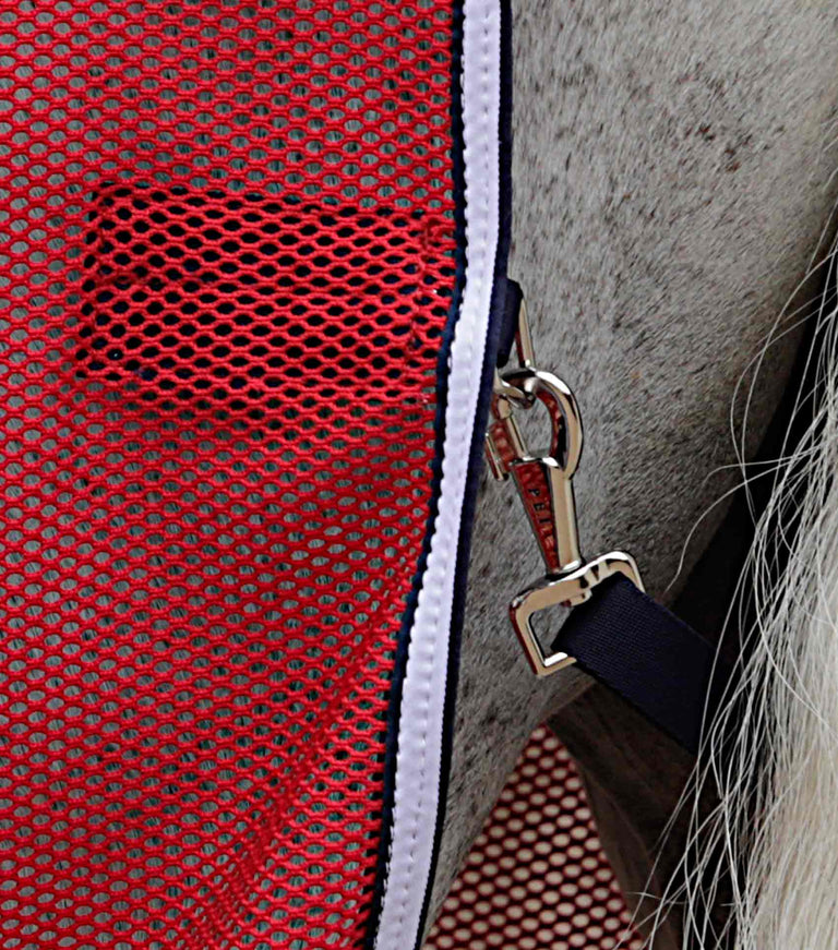 The Net-Air Cooler Rug is made from a large, open-hole mesh that is extremely lightweight and therefore perfect for use in warmer months. Based on traditional technology, the holes allow heat to be dispersed quickly whilst still preventing your horse from getting a chill. The holes in the mesh trap warmth and help create a layer of insulation. Secured with a single, double locking Velcro strap at the chest and cross surcingles. The perfect sweat rug for long, warm days where cooling and maximum breathability are required.