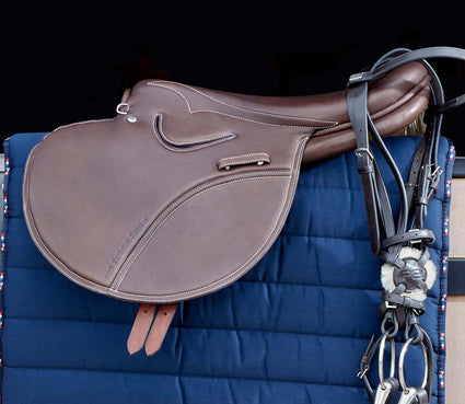 With deep flaps for improved leg stability and wide panels to allow full shoulder movement, this saddle reduces pressure on the spine and topline while enhancing horse comfort and freedom. Dual-density padding provides shock absorption without added weight, while detachable leather girth straps ensure a secure fit. It strikes the perfect balance between traditional craftsmanship and modern functionality.
