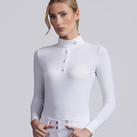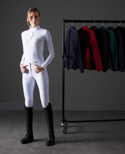 Finished with a stylish stand collar and pleated cuffs with subtle PE branding, it offers a refined, competition-ready look across all disciplines.