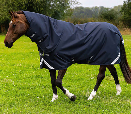 Meticulously crafted from durable 1200D Oxford weave polyester, the Stratus 1200 Series 100g Turnout Rug with Classic Neck Cover blends traditional styling with advanced technology for superior weather protection.