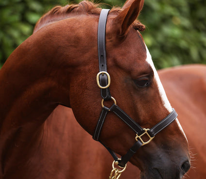 Crafted from premium European leather, this elegant headcollar combines refined style with everyday functionality, featuring contrast stitching and solid brass fittings for a timeless, professional finish.