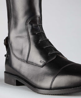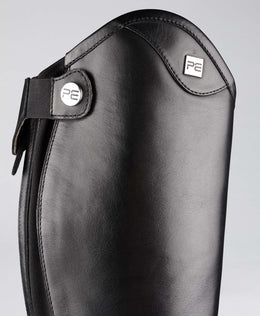 The PE branding on the Vedetta Women's Long Boots is a mark of refined elegance and quality craftsmanship. Featuring sleek, silver-toned metal badges embossed with the Premier Equine (PE) logo, the branding is subtly placed at the top of the boot and on the closure strap. These accents add a touch of sophistication while reinforcing the brand’s commitment to premium equestrian footwear.