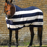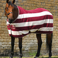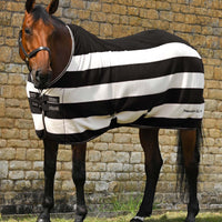 Crafted for ultimate comfort and performance, the Vellus Fleece Cooler Rug is made from luxurious 520g anti-pilling polar fleece, delivering a soft, warm, and breathable layer to keep your horse cosy after exercise or during travel. A double T-bar front closure with a secure double-locking strap ensures a stable, contoured fit, while reinforced stitching at the neckline and wither prevents stretching and helps maintain its shape over time. Soft comfort binding adds to the gentle feel against your horse’s skin, and the adjustable tail strap provides extra security. Finished with an elegant embroidered logo and space for customisation, the Vellus Cooler combines premium materials with a smart, professional finish, an essential staple for any equine wardrobe.