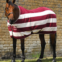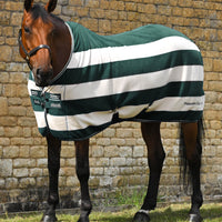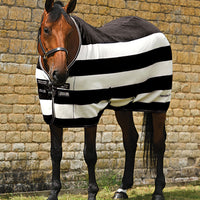 Engineered for superior comfort, the Vellus Fleece Cooler Rug is made from premium 520g anti-pilling polar fleece, offering a soft, insulating layer to keep your horse warm and cosy. The double T-bar front closure with a secure double-locking strap provides a snug, stay-in-place fit, while reinforced stitching at the neckline and wither helps maintain the rug’s shape and prevent unwanted stretching. Soft comfort binding enhances the overall feel, and the adjustable tail strap ensures added stability. Finished with a refined embroidered logo and space for personalisation, this rug blends practical functionality with a polished, professional look—making it a must-have addition to any horse’s wardrobe.